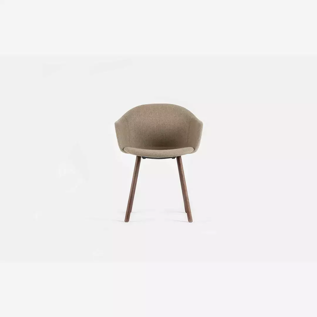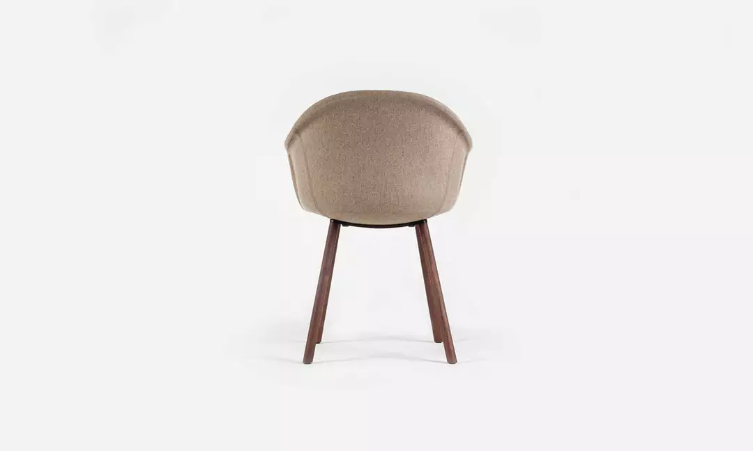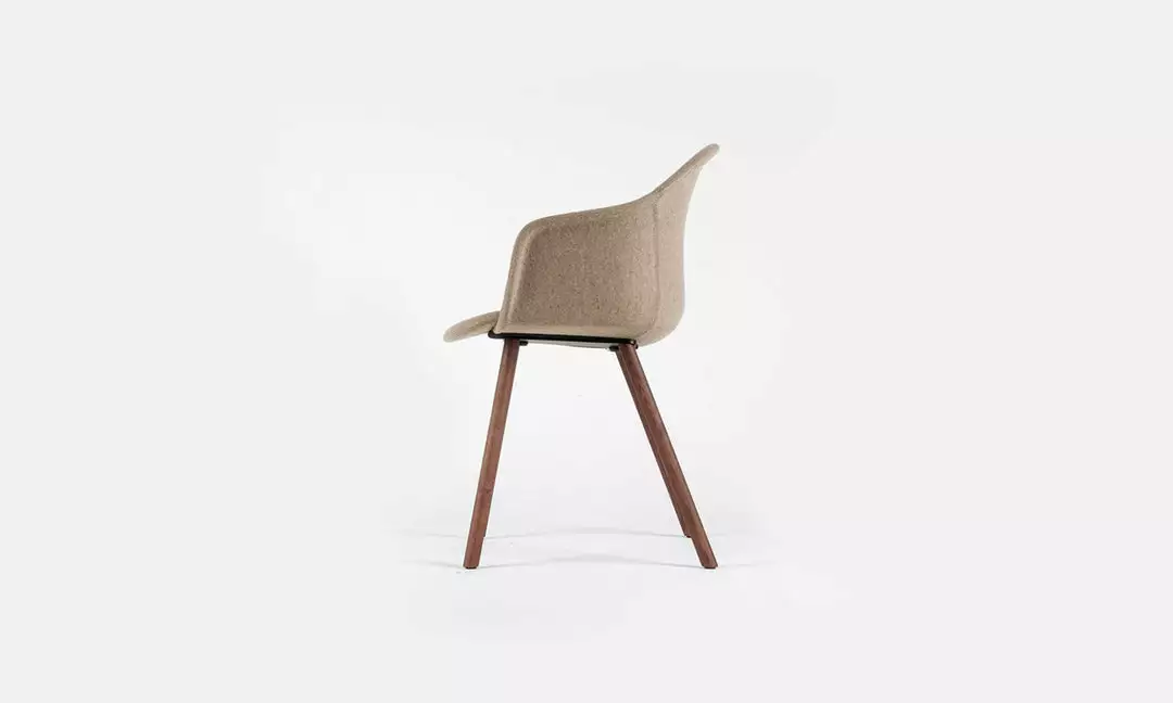 MÃ ni Armshell features soft, curving contours, providing comfortable seating to support even the most relaxed postures. The polypropylene shell produced from a single mould is accompanied by a choice of seats made of wood, upholstered or in tone-on-tone polypropylene in a slightly deeper shade. MÃ ni Armshell, which is also available in a completely upholstered version, can be combined with a range of chair or stool bases featuring wooden legs, metal sled base, swivel trestle base or castors.
