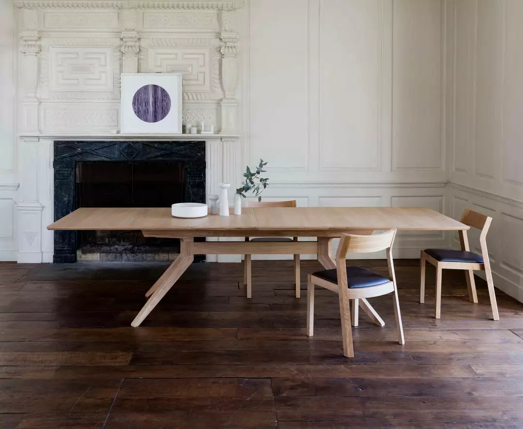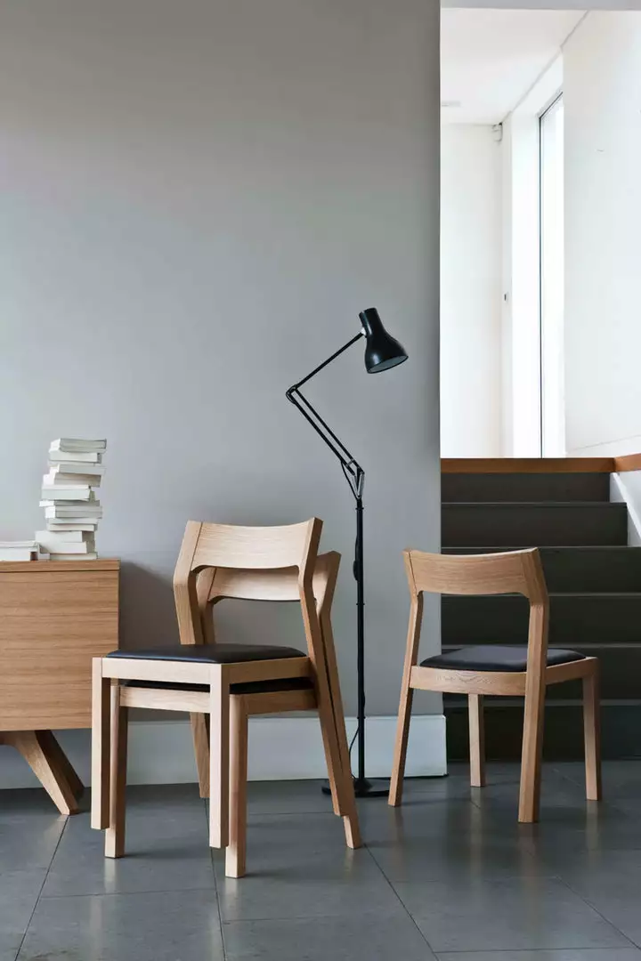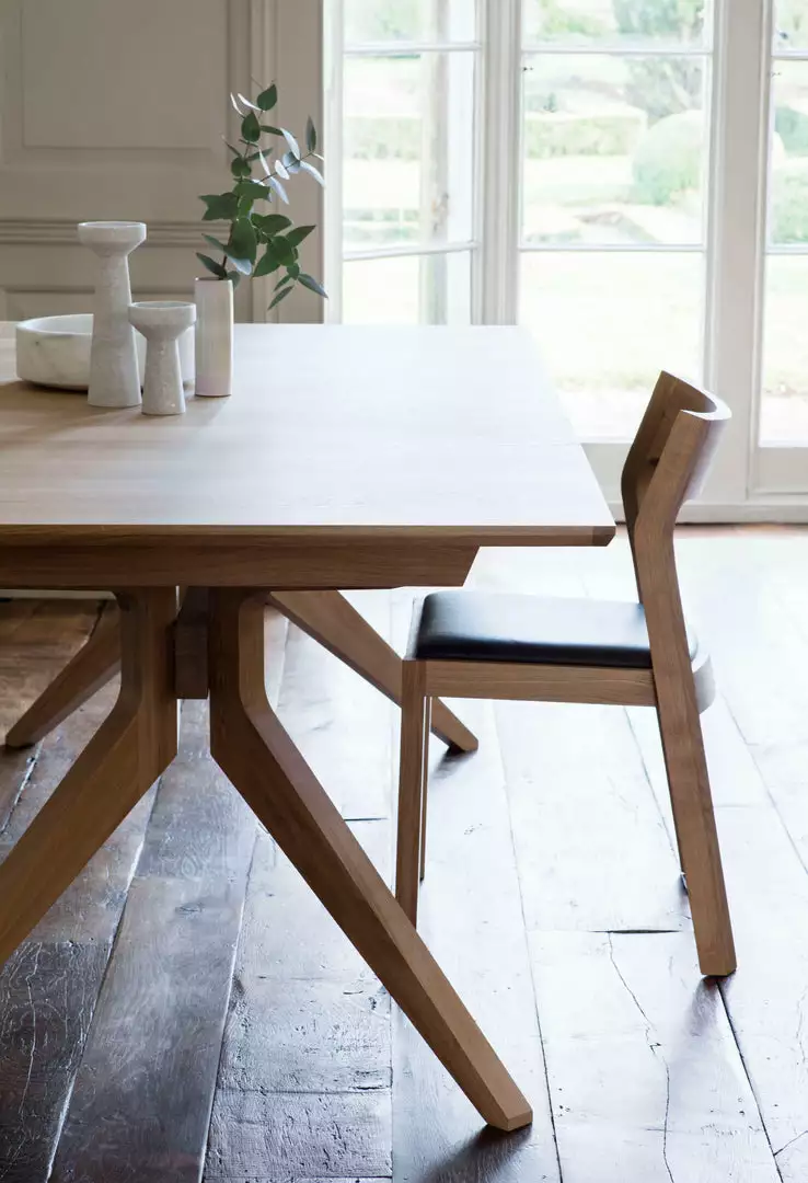 The Profile Chair was designed by Matthew Hilton to accompany his award-winning Cross Extending Table. Crafted from solid timber, this well proportioned chair features a soft upholstered leather seat pad, splayed legs and a recessed back which ensures it is extremely comfortable to sit in for extended periods of time.