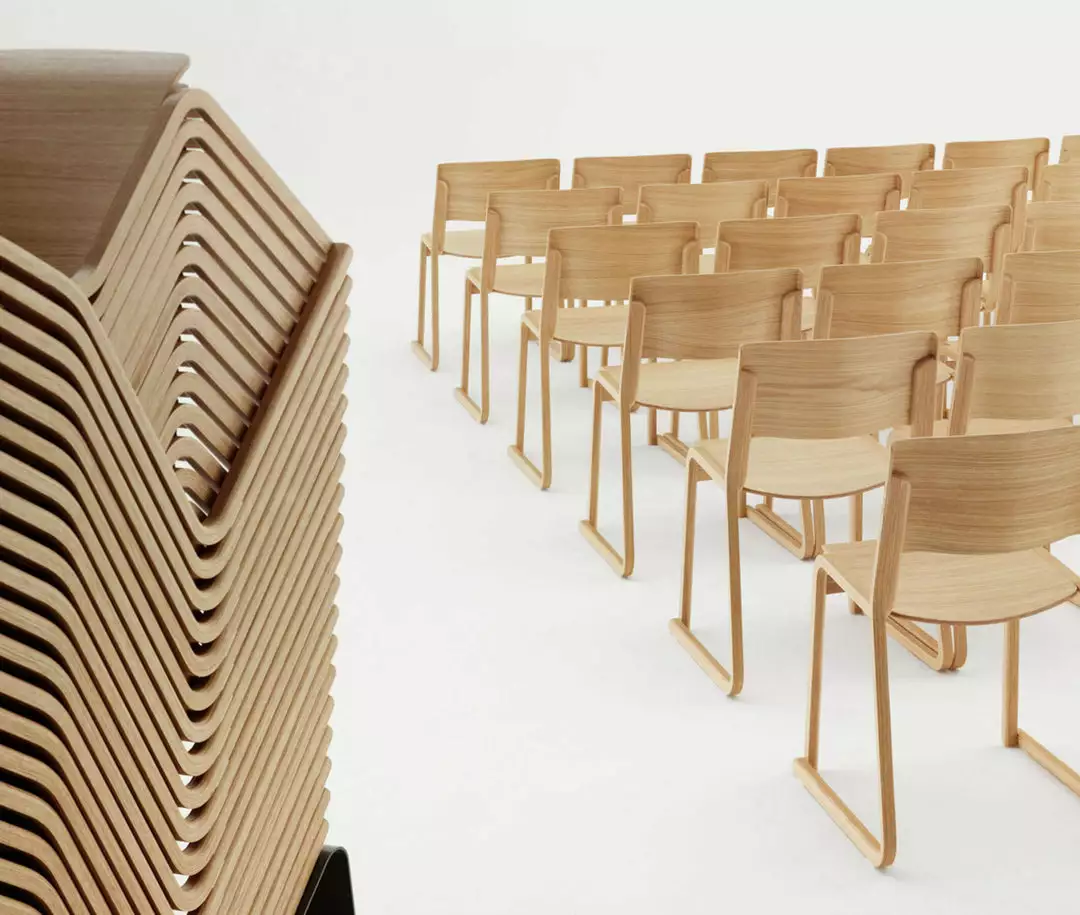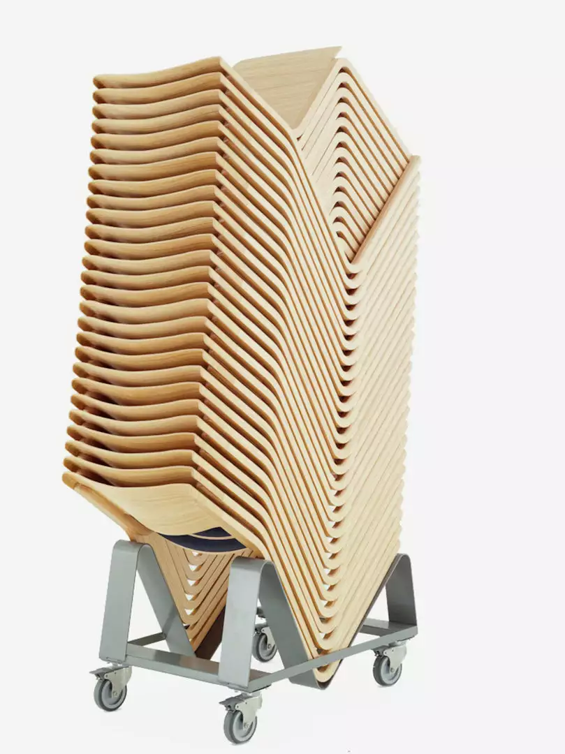 The Theo Chair by Chorus is an ‘all wood’ high density stacking chair available with and without arms, in natural oak or ash, stains or lacquered in a range of solid colours with the option of an upholstered seat pad. Light in weight yet strong and durable, Theo possesses an elegant and purposeful aesthetic and is entirely at home in both modern and traditional interiors. 30 chairs can stack on a purpose-designed trolley and still be wheeled through a standard door opening, and may be linked in rows for auditorium use.