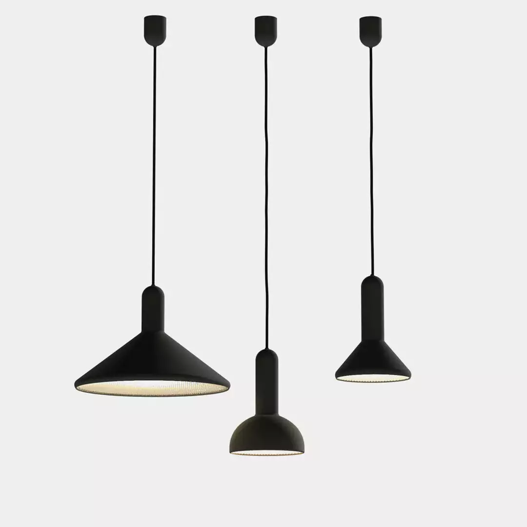 The Torch Light by Sylvain Willenz combines a tactile, PVC-dipped polymer shade with a diamond-textured diffuser – a reference to car headlights – and a brightly coloured cable, offering a wide array of colour and cluster combinations.