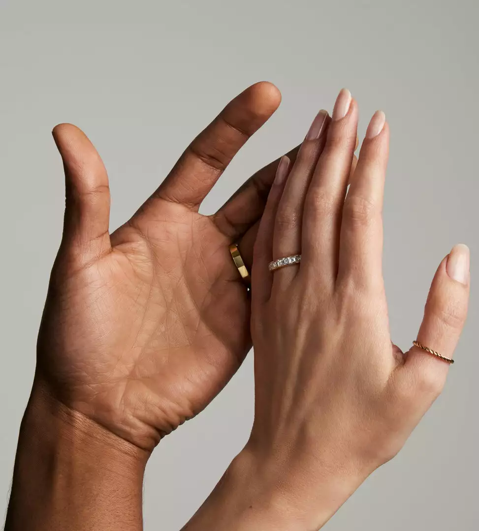 The 14-Sided Yellow Gold Band by Jessica McCormack is as versatile as it is beautiful. Handcrafted with 14 sides in 18k yellow gold with a band width of 4.0mm, this unique, geometric style is designed to be worn as a wedding band or stacked and layered with other styles.
