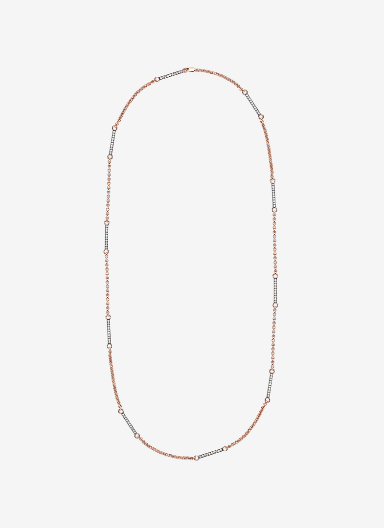 This unique belcher chain is punctuated with ten round brilliant-cut diamond set bars measuring 1.8mm in width and 29mm in length. Handcrafted in blackened 18k white and 18k rose gold, the total diamond weight is 2.10 carats, and the chain length measures 30 inches.