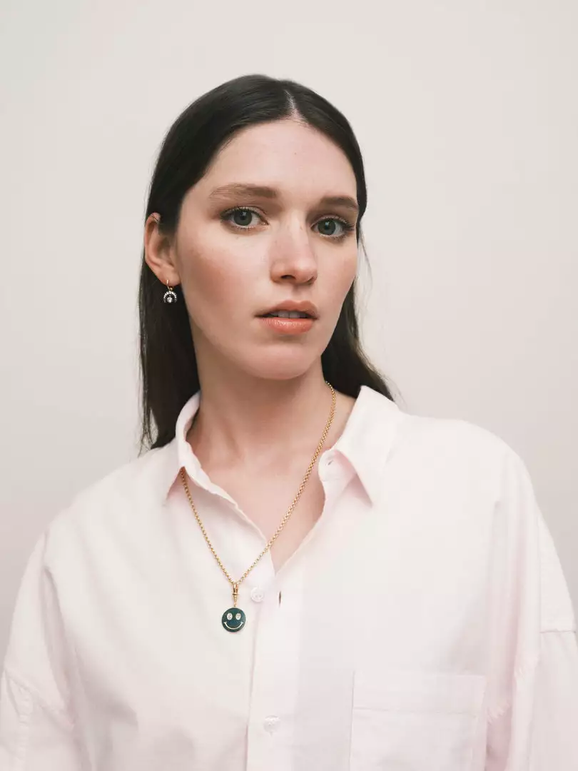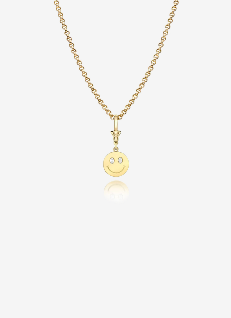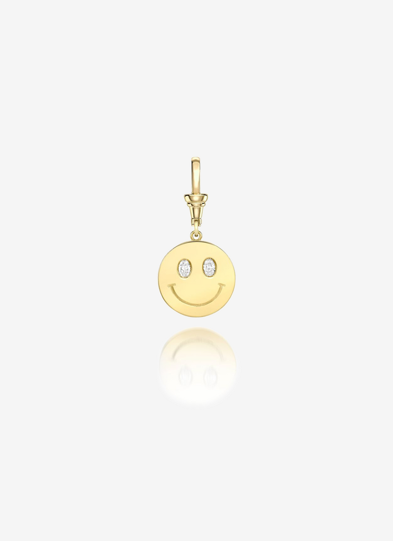 From the Happy Place Collection by Jessica McCormack, the Smiley Face pendant is set with two 0.20 carat oval-shaped diamonds and engraved with smile details.