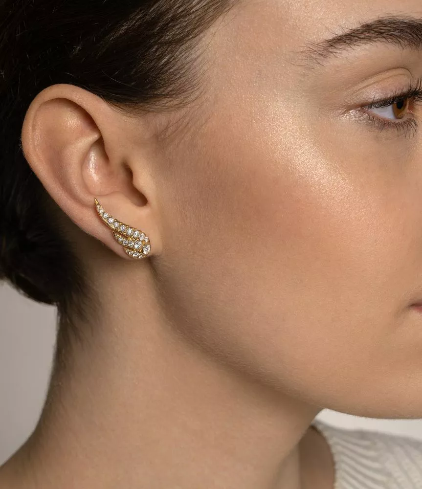 The Wing of Desire Earrings are climber earrings, designed to trace the contour of the wearers ear.Â