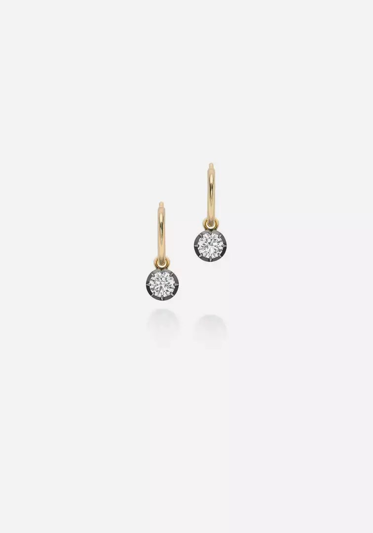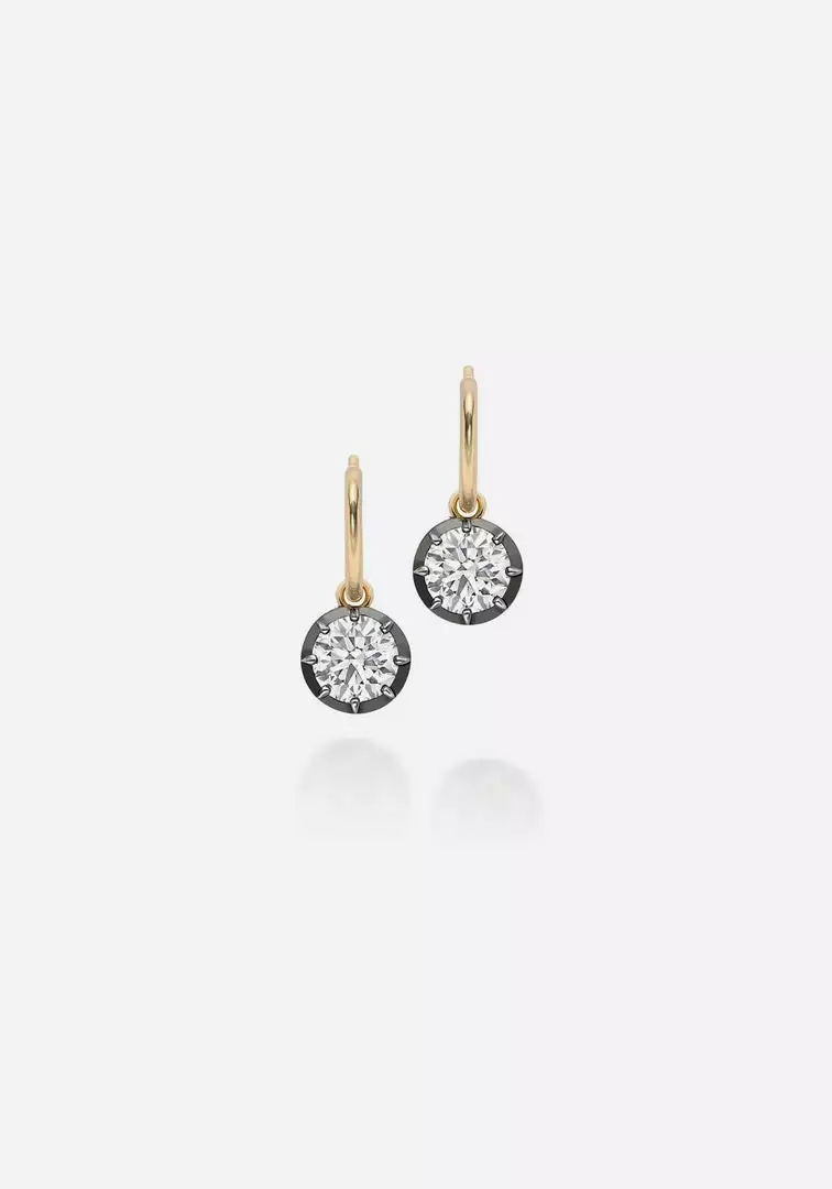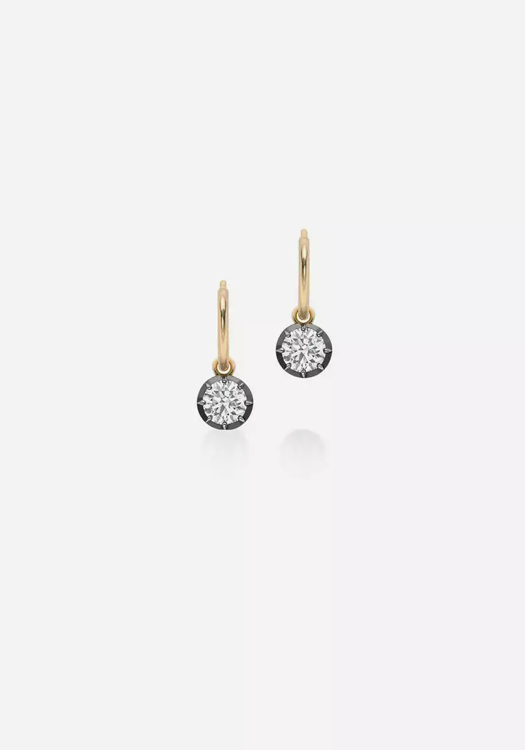 The Signature Diamond and Blackened Gold Gypsets by Jessica McCormack are beautiful and iconic. With classic JM detailing, these earrings are understated yet luxurious, featuring a dangling brilliant-cut diamond hanging from each 18k yellow gold hoop. Perfect to be worn every day and on any occasion, these are earrings you never need to take off. Available in a variety of diamond carat sizes.