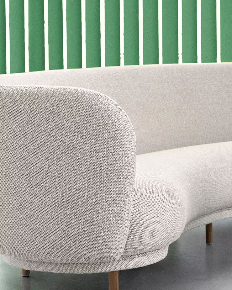 The stylish and comfortable Dandy Sofa brings homely references to any public space or office. Its curvaceous geometry means that it doesn’t feel committed to standing against a wall – it can be freely placed in space in any orientation, creating interesting areas and flowing pathways around it. The Dandy design encourages interactions as its curvaceous form has its guests face each other and when placed in an open space it creates new movement patterns in the room.