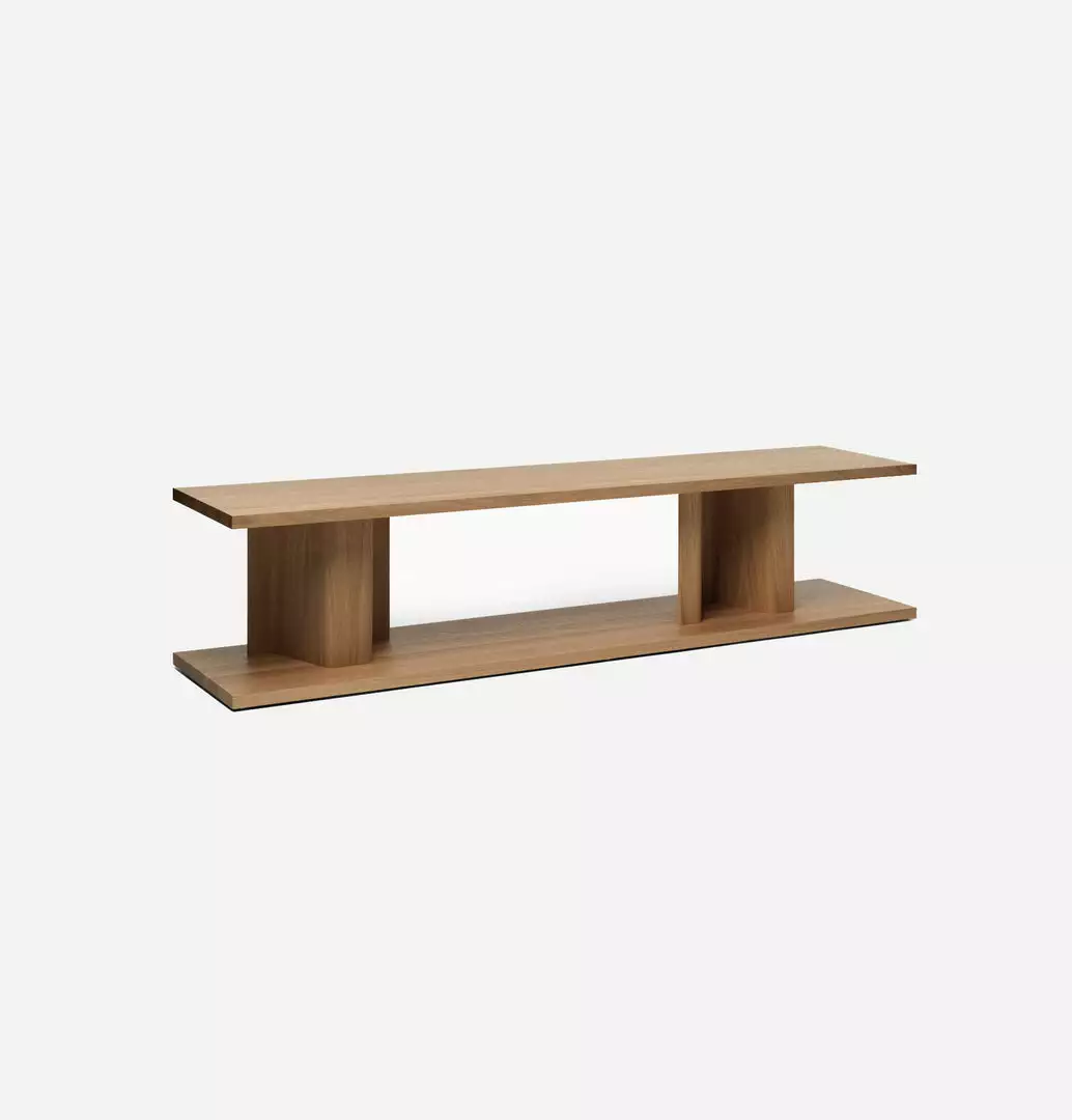 The Bit range by Massproduction features a special construction of two solid wood boards separated by a thin, but strong element of industrially molded veneer, to create an architectural piece that works as an occasional table or an elegant base for a lamp, vase or sculpture.