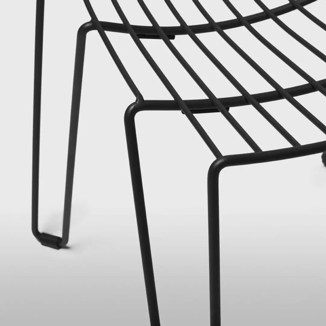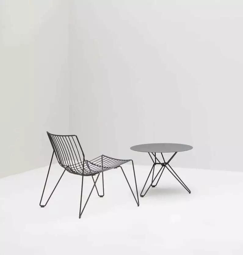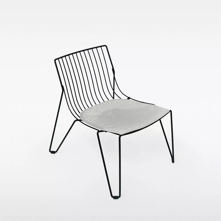 An elegant, stackable chair made solely from steel wire. Due to its transparency and clarity of design, The coveted Tio Easy Chair by Massproductions blends in well with a large variety of architectural styles. Suitable for indoor and outdoor use. Galvanized metal wire covered with a polyester powder coat, available in black and white quick-ship and other colours or seat pads are imported to order.