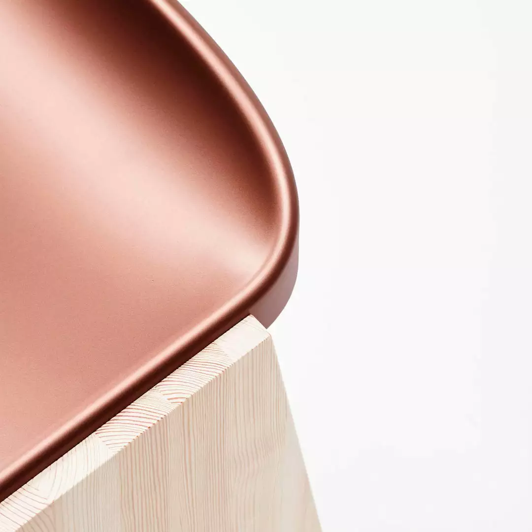 Fronda by Sam Hecht and Kim Colin is a new typology for Mattiazzi: a seat that also houses storage. Inspired by our contemporary, nomadic nature and the need in public places to accommodate personal items, the Fronda chair offers a single wood shelf beneath its sculpted steel seat. Fronda is the first Mattiazzi collection to use wood for structure and metal for its seat. This inversion of material and function makes for a chair and a stool that are complimentary but individual in character. When placed side by side, the ash base creates a natural spacer that allows people to sit next to each other comfortably.