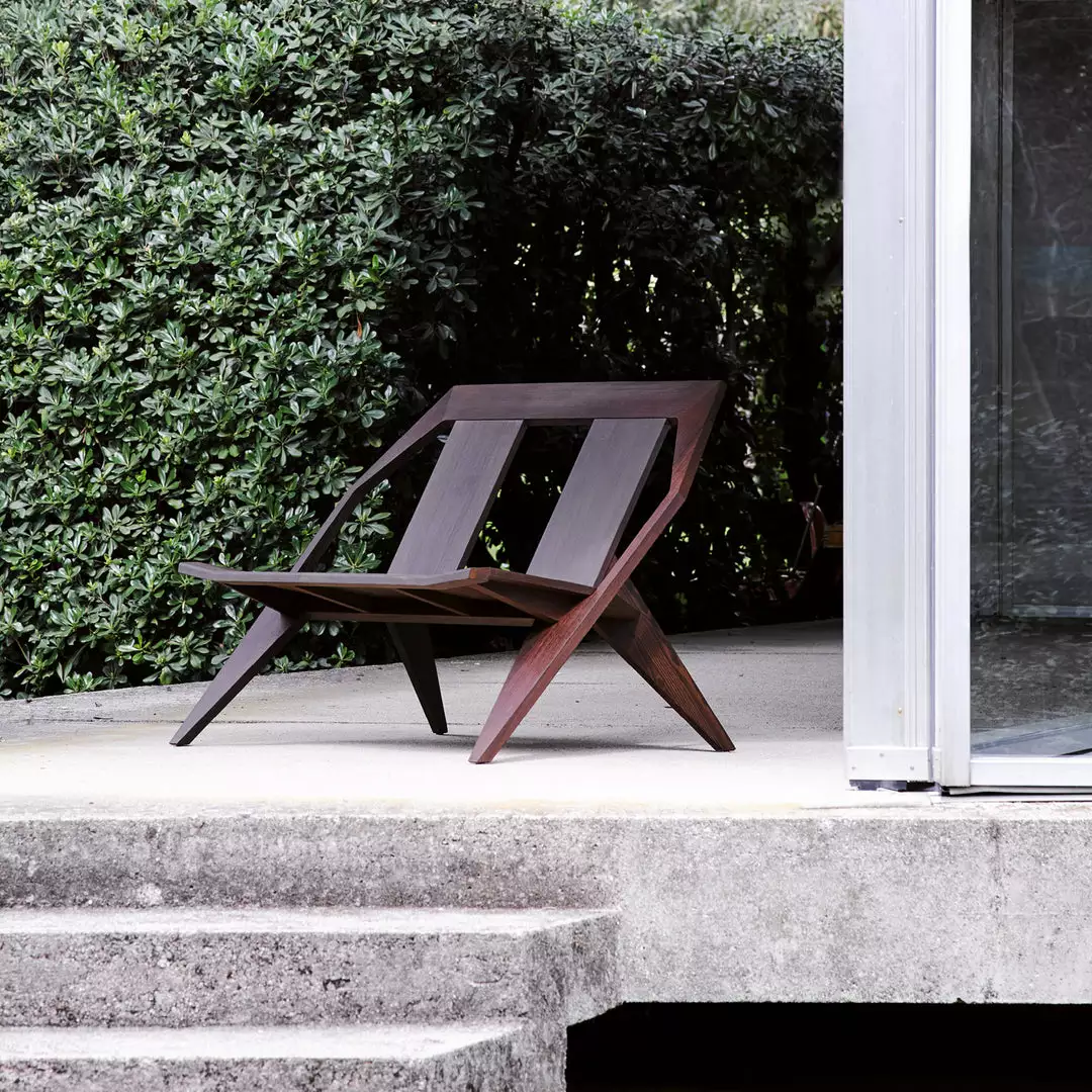 Medici, designed by Konstantin Grcic, is a low chair with a comfortable reclined posture. Its generous dimension gives the chair an embracing confidence. The chair, a sort of return to professional roots for Grcic, was inspired by the material, by the machinery and by the skill and craftsmanship of the people working in Mattiazzi. Medici can be imagined as solitary furniture or in small groups. It can be used in private or public, indoors and outdoors combined with its table and stool. Medici is produced in different colours and woods: American walnut, Douglas fir, ash and thermo- treated ash which can be used outdoors.