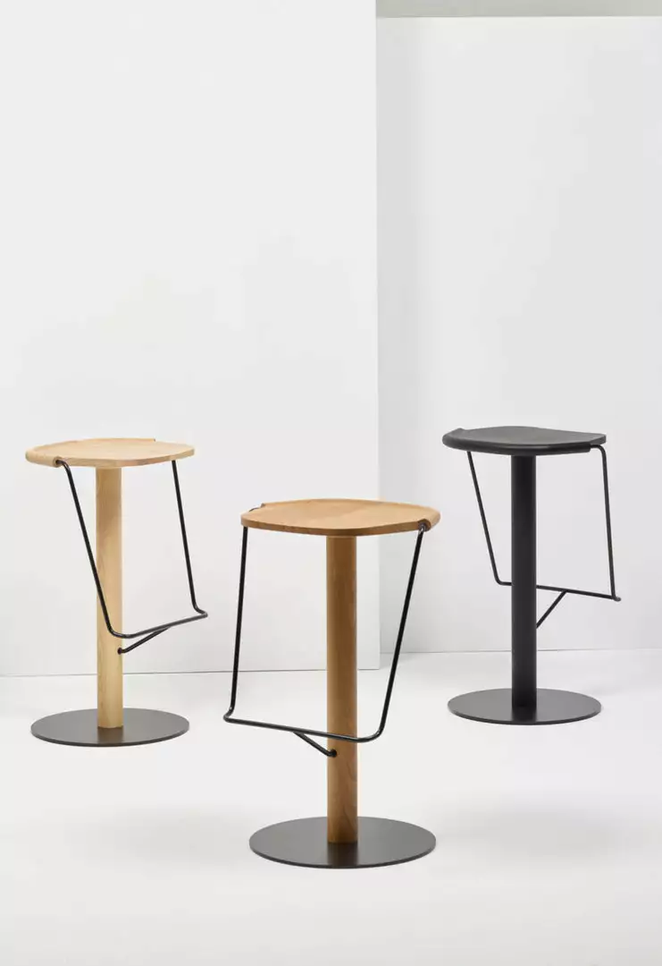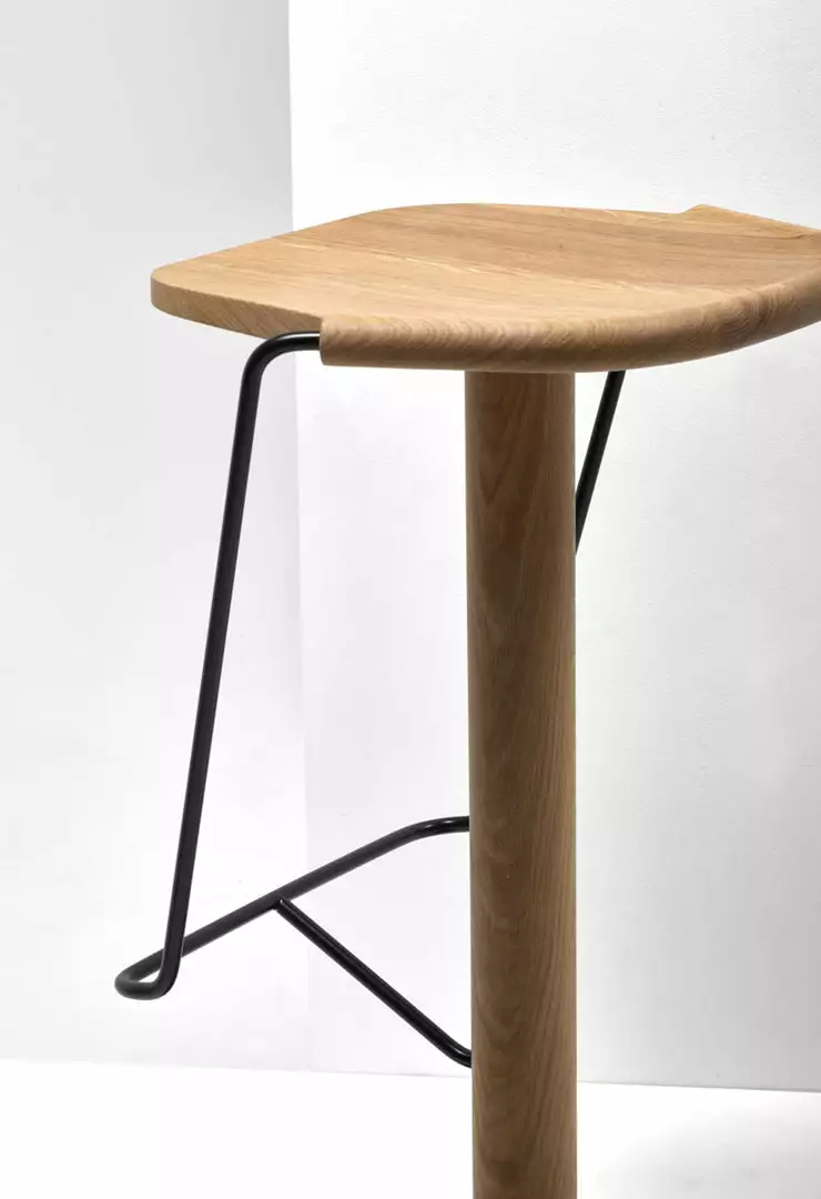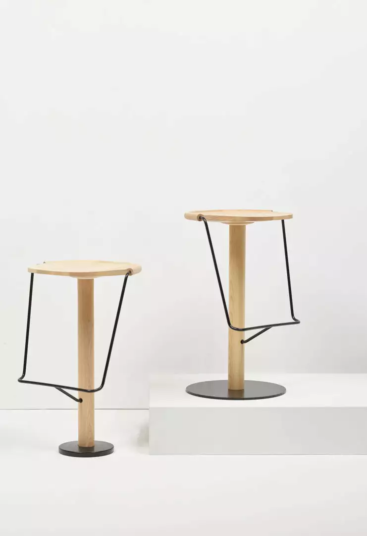 The Uncino stool by Ronan & Erwan Bouroullec is made with the idea of sculpting wood both handcrafted and with numerically controlled milling machines. The metal structure joins the pieces of wood in an almost organic overlap. The wood embraces the metal rods whose form subtlety appears on the wooden surface. Crafted in Italy by Mattiazzi from sustainably sourced ash and oak timbers, with the option of a fixed or freestanding base.