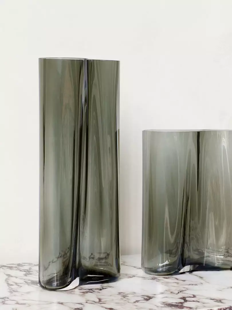 The Aer vase by Gabriel Tan for Menu brings sculptural appeal to surfaces. The vase’s asymmetrical silhouette undulates in liquid-like waves to bring a tactile, almost ethereal quality to the glass.