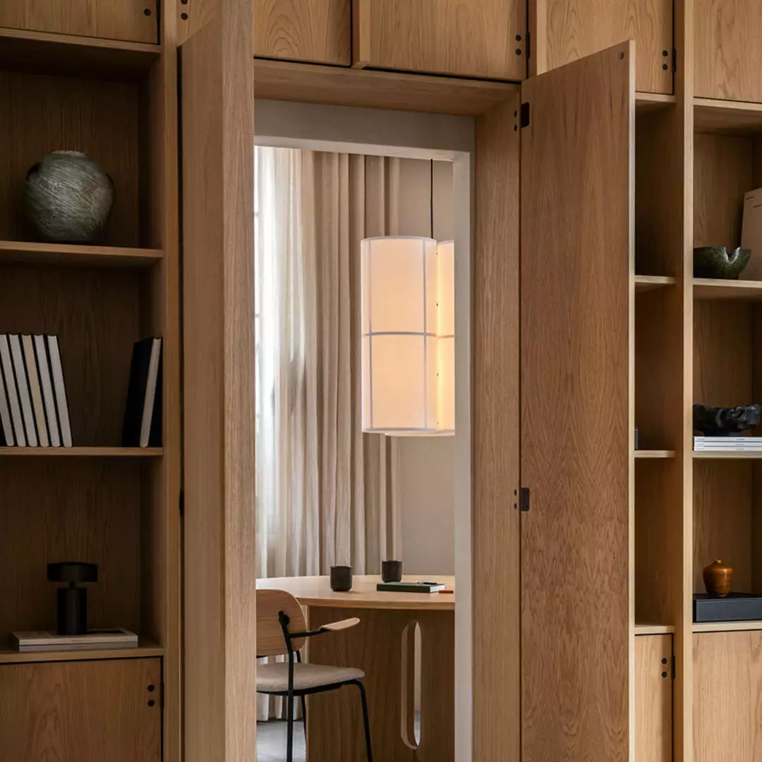 The Hashira is a trio of pendants suspended from a black textile cord create the collection’s cluster light, bringing the same sense of understated luxury and calm to interior spaces as the other designs in the collection. Available in two sizes – small and large – it lends itself beautiful to any setting thanks to its minimalist expression and natural materials. In a hotel lobby, office reception or home dining room, it brings the perfect combination tradition and modernity.
