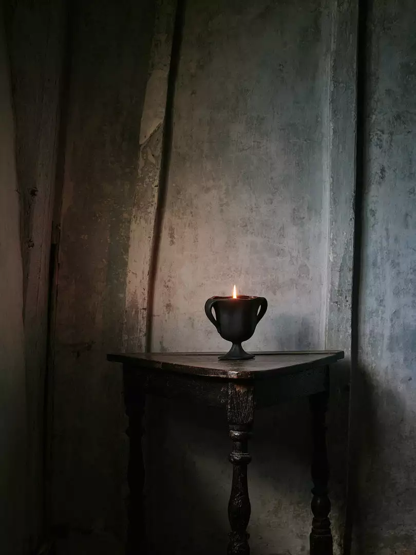 Uniquely warm and inviting, the Augustine candle by Moro Dabron is part of a collection of scents born out of a love of romantic interiors and gardens across time. Handcrafted from black Earthenware, the twin-handled Augustine vessel is poured, glazed and fired in an English pottery, giving a gentle nod to the work of the late florist and author Constance Spry through its form.