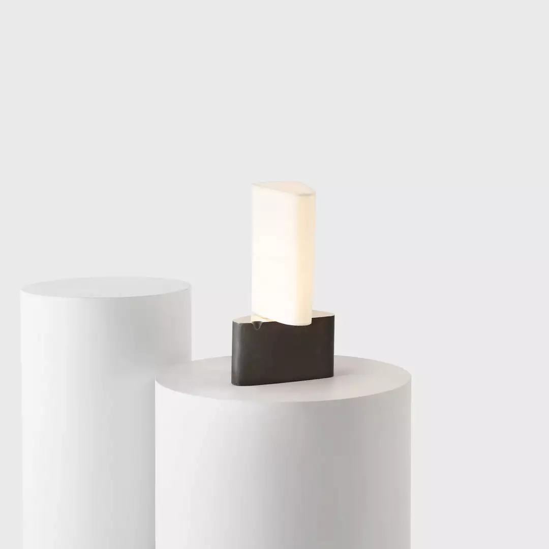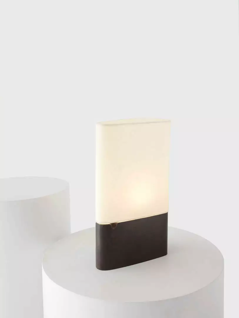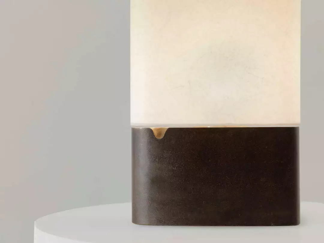Executed with a Japanese paper shade and either a sand-cast bronze or cork base, the Fulcrum Lamp uses its classically rooted two-part format to explore a rich dialect of material and mass.