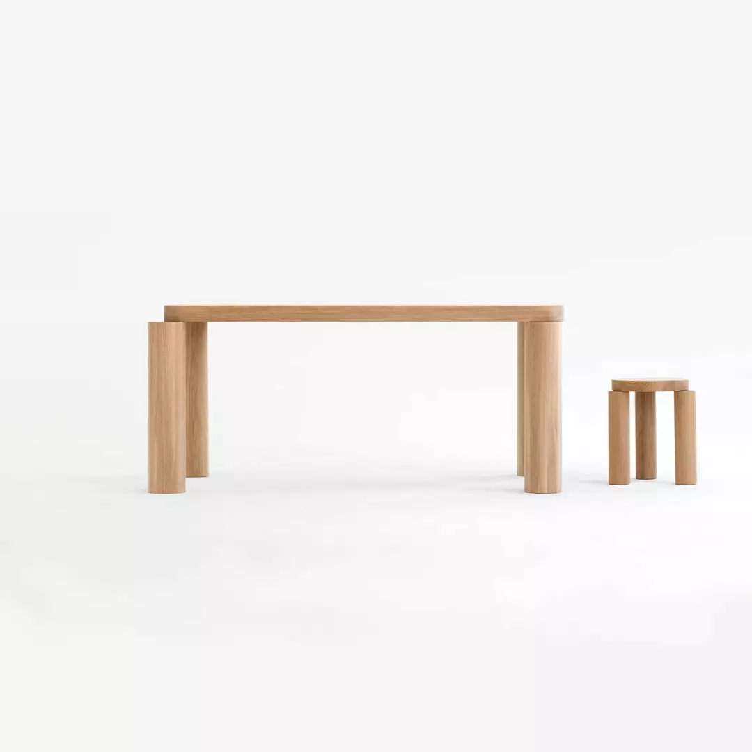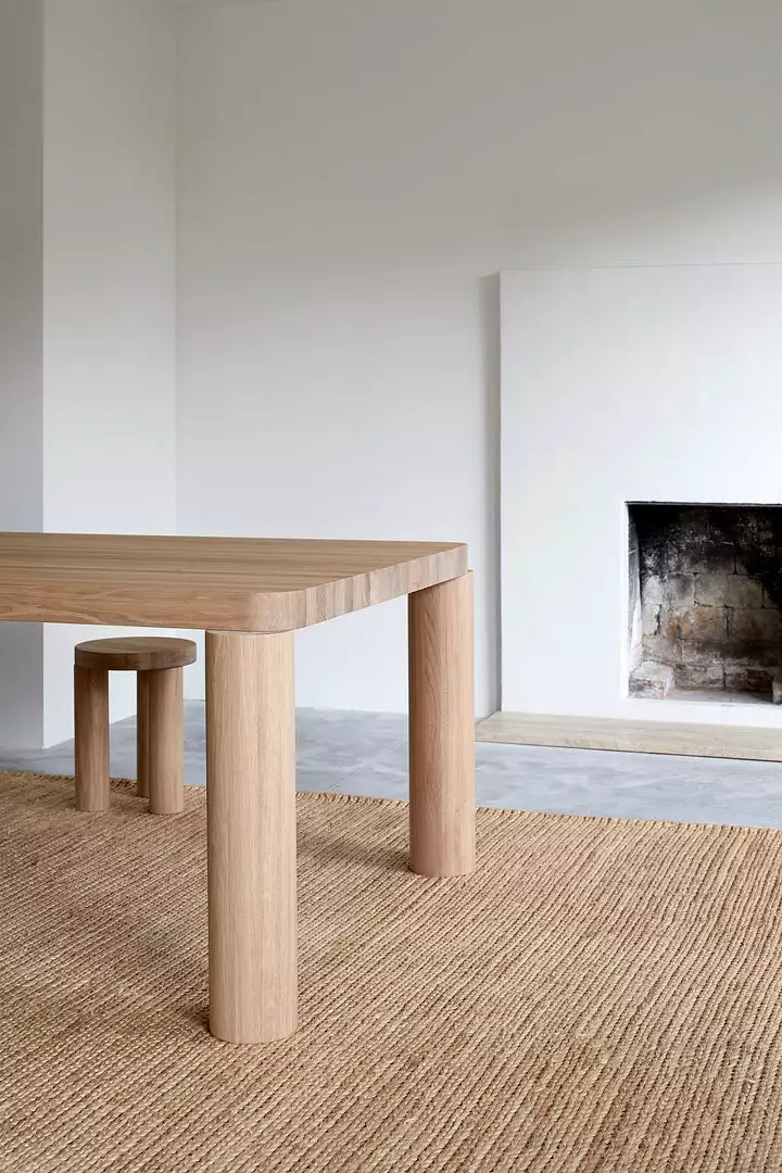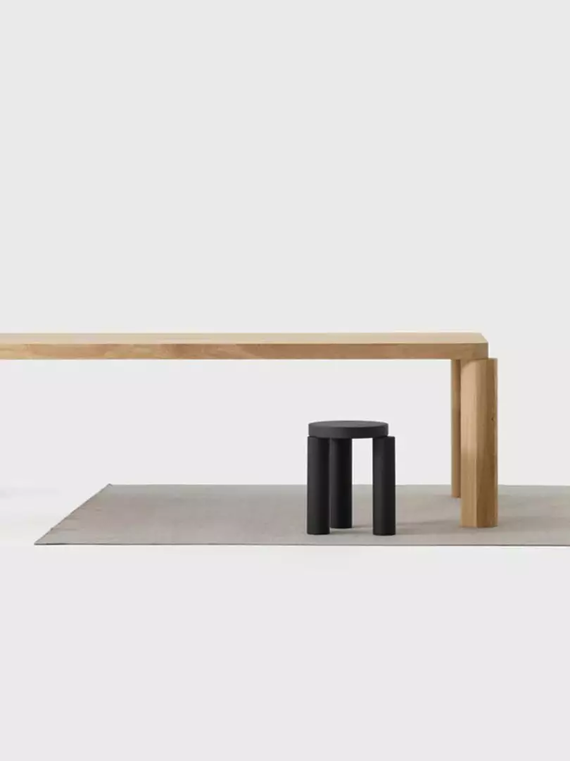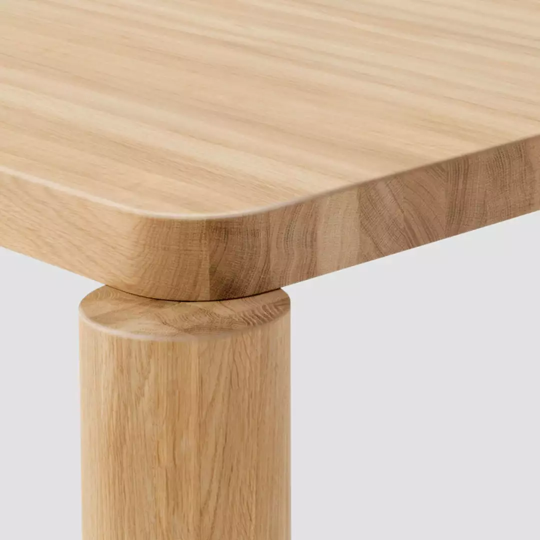 The Offset Dining Table is a bold and heavy-duty furniture piece which displays the beauty of solid oak in generous proportions. Designed by Philippe Malouin, each Offset leg attaches to the table top by way of an off-centre threaded connector – ensuring that each leg finally rests in an individualistic position.