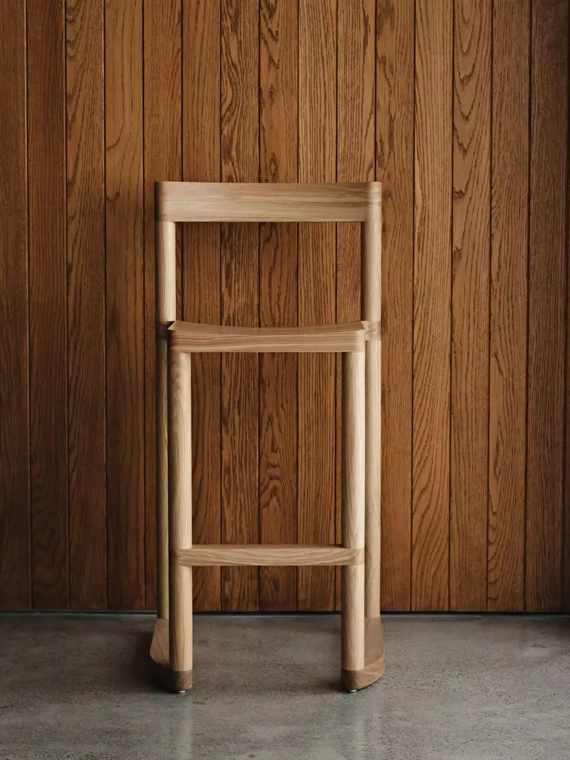 The Pier Stool is inspired by the thick and straight cylindrical pillars of pier structures. Made entirely from solid oak, the stool is composed by using only mortise and tenon joints, allowing the wood fibres to run continuously throughout, giving the piece sustained durability.