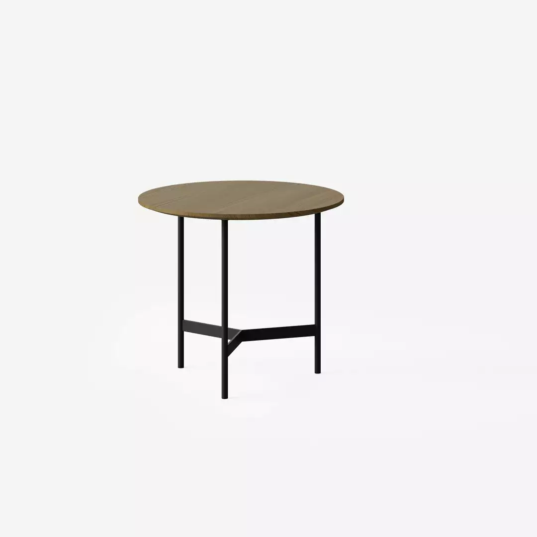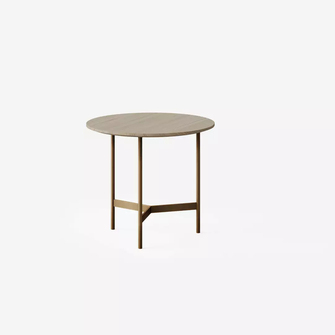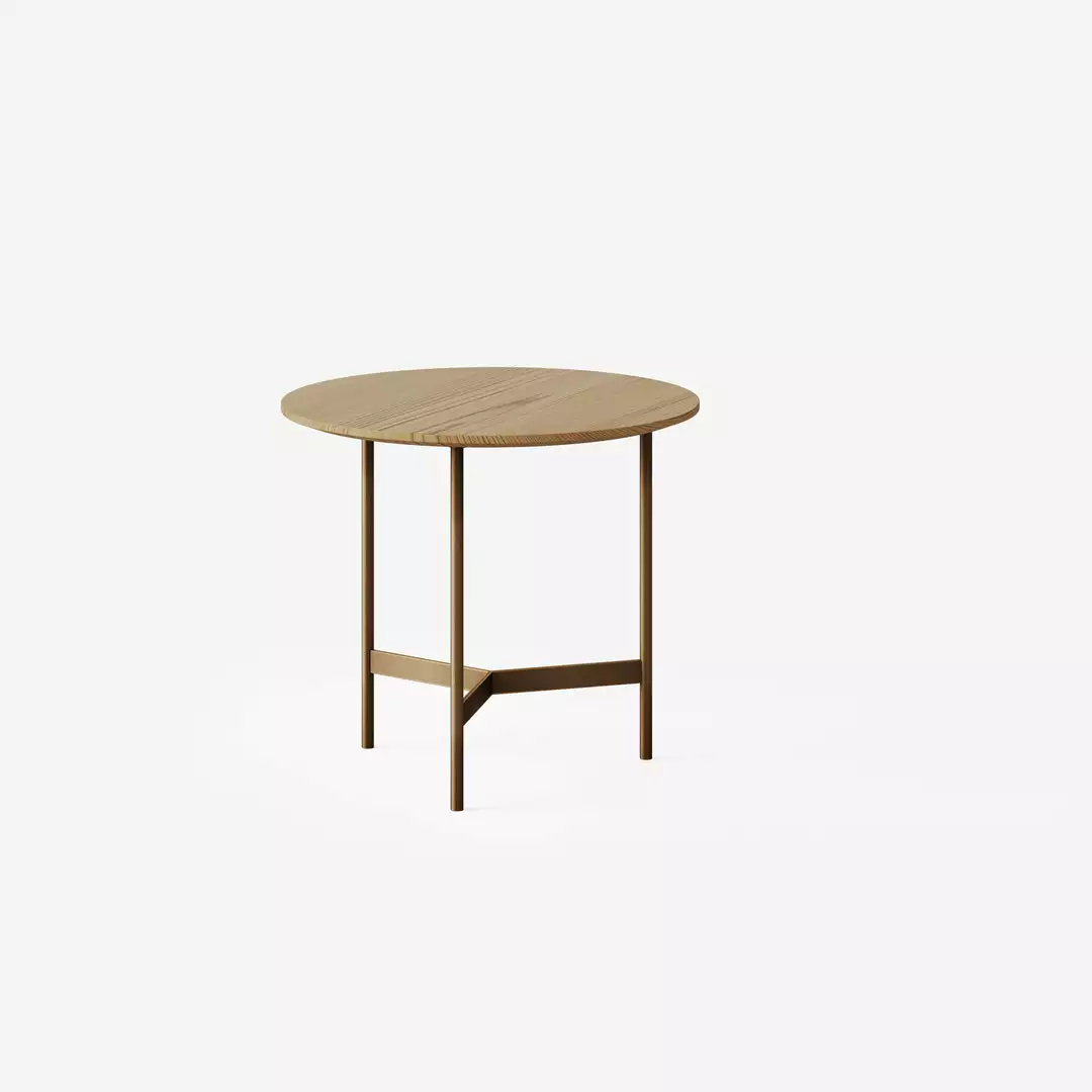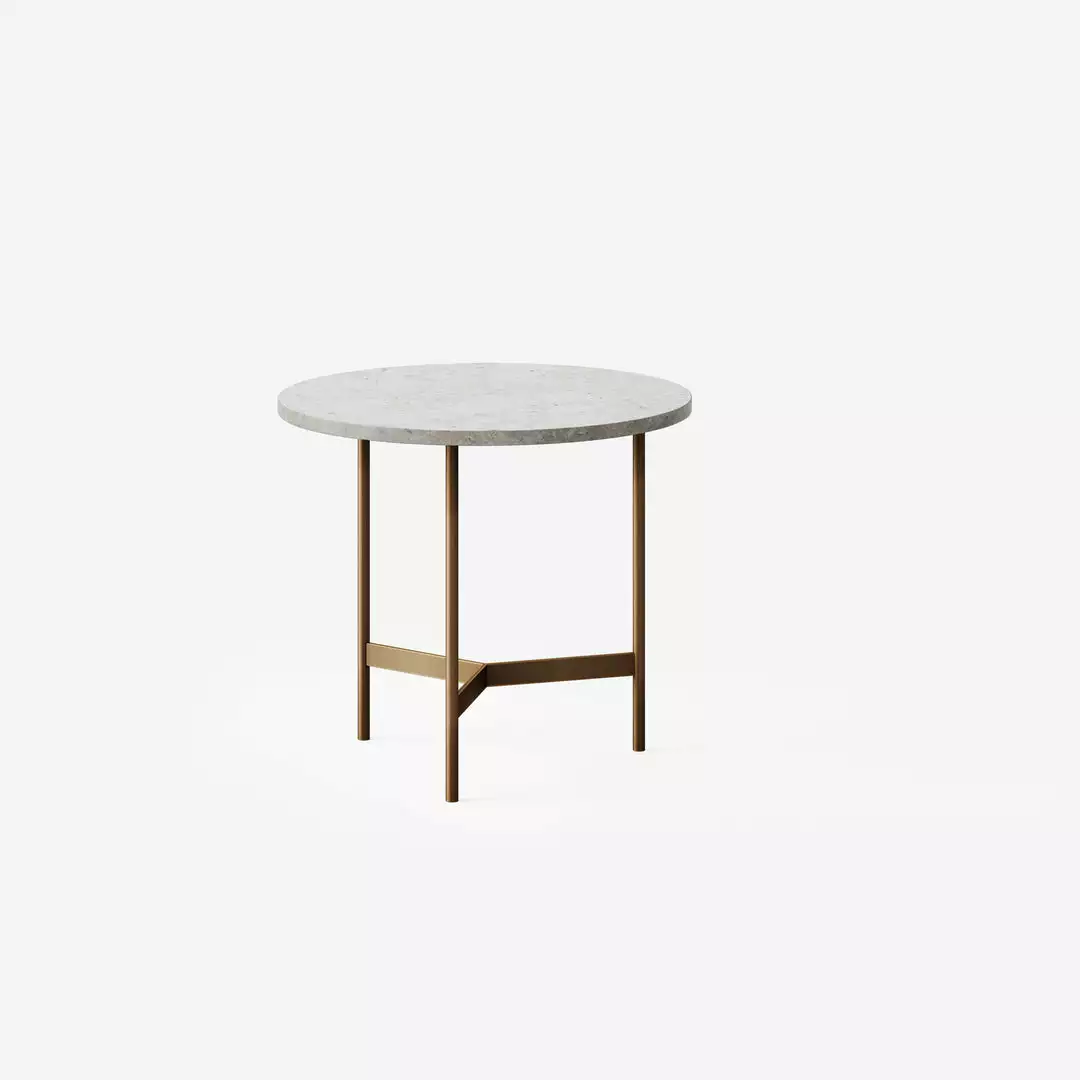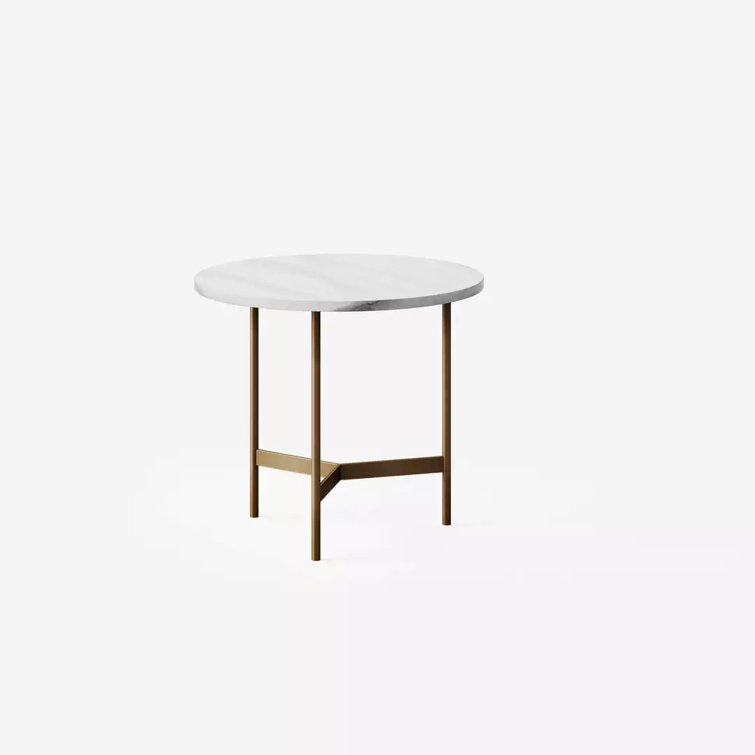 The Border Side Table offers a refined three leg base in a range of different finishes including black powder coat steel and aged brass. The round top comes in stained oak veneer, Carrara marble, Tundra marble and black Marquina marble.Â