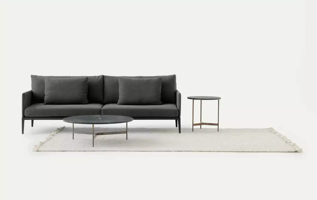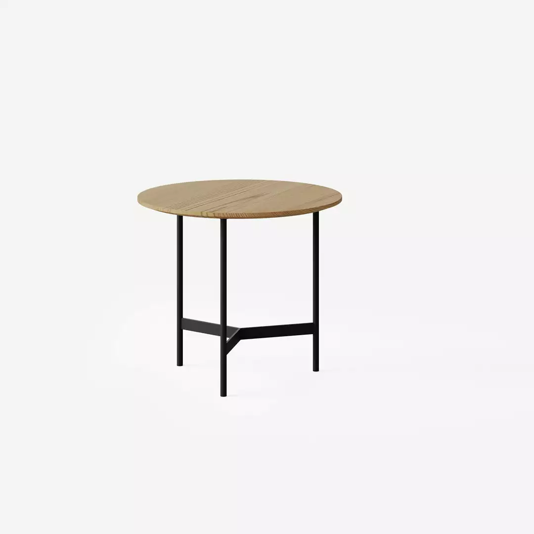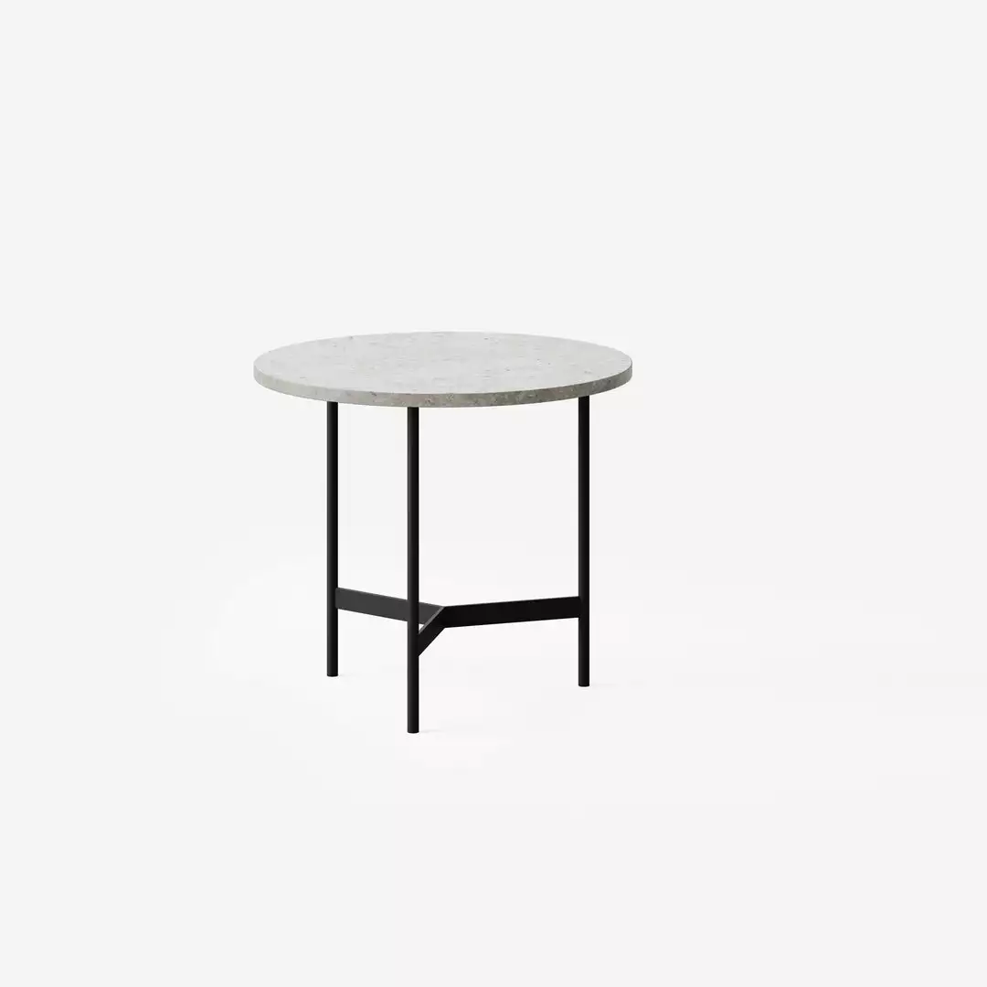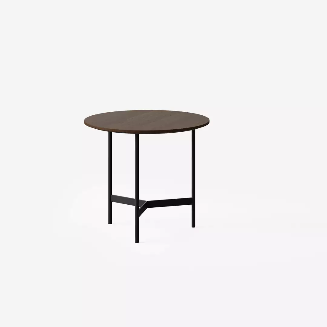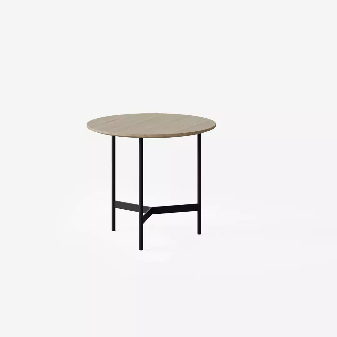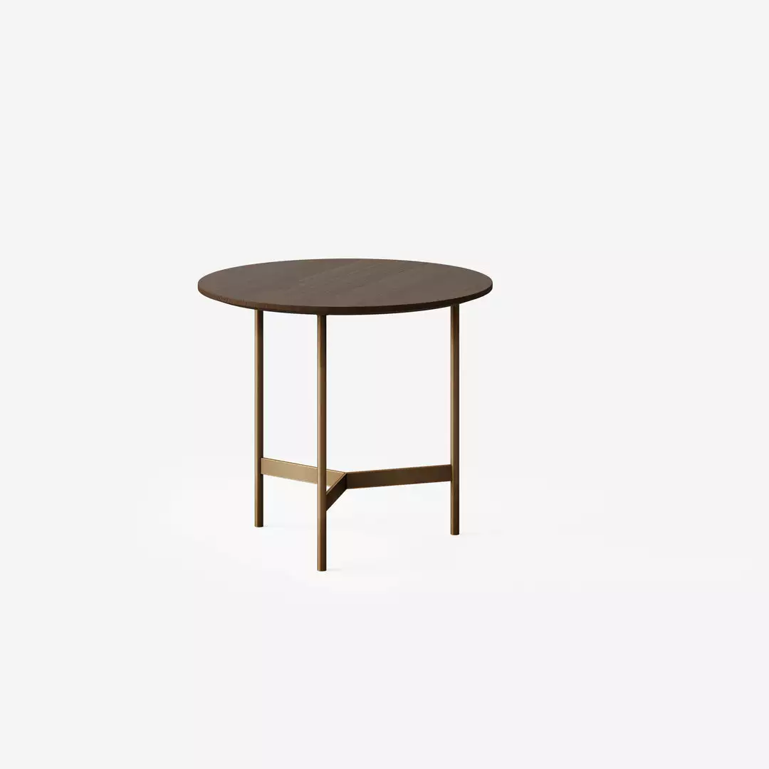 The Border Side Table offers a refined three leg base in a range of different finishes including black powder coat steel and aged brass. The round top comes in stained oak veneer, Carrara marble, Tundra marble and black Marquina marble.Â