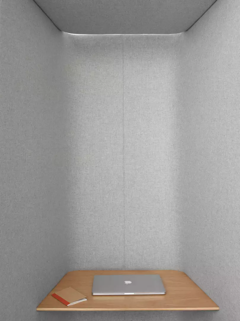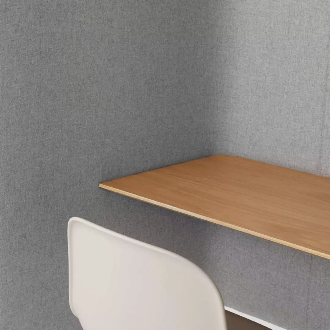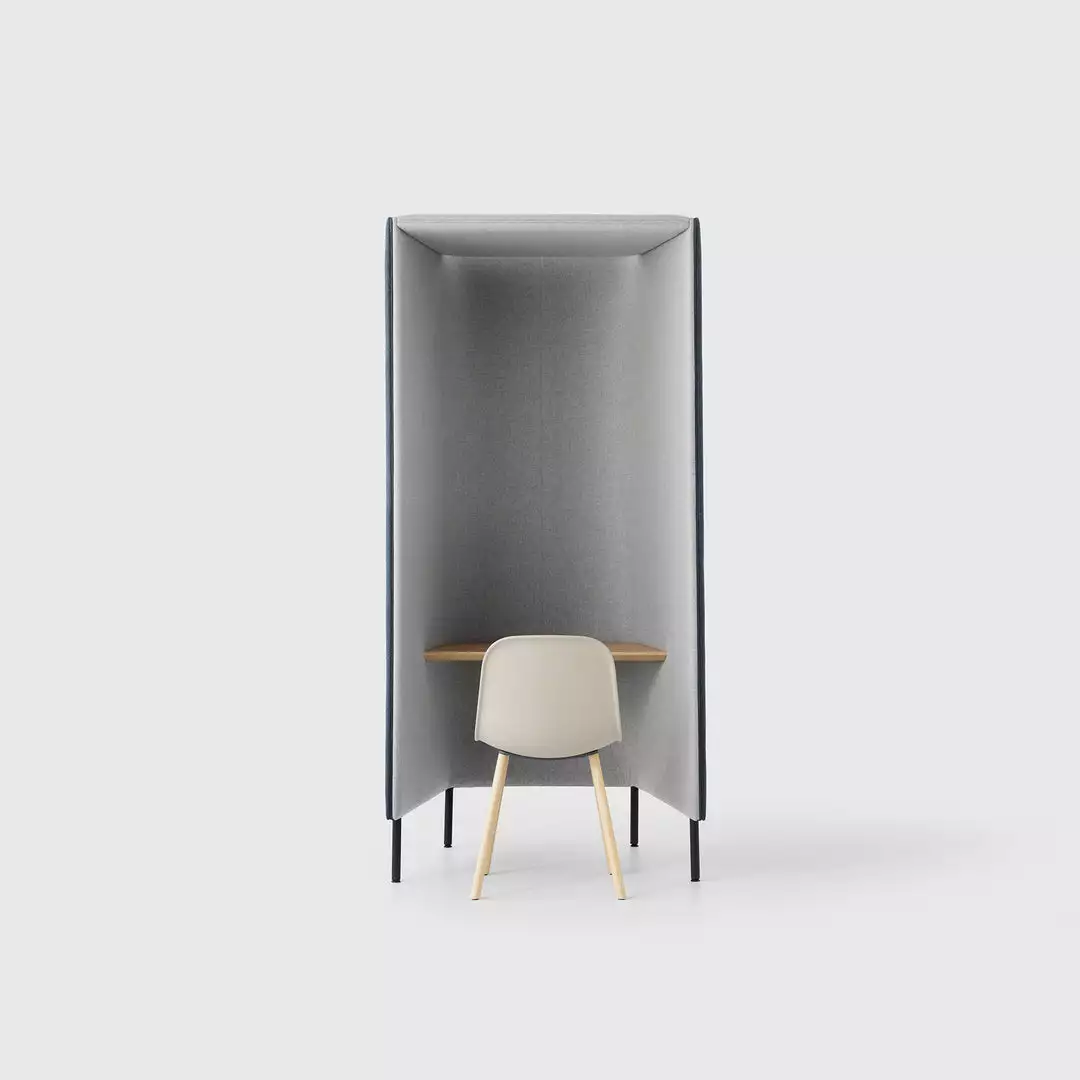 An ideal retreat in an open plan office environment, with its private desk and optional soft wiring and desk lighting, it is the perfect place to plug-in and work alone in quiet. With it’s roof and semi-enclosed structure, it offers exceptional acoustic qualities in today’s modern workspace. The Cabin Desk by Simon James is available in a large range of fabric options.