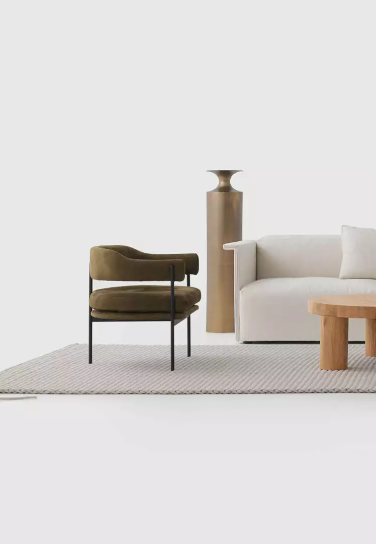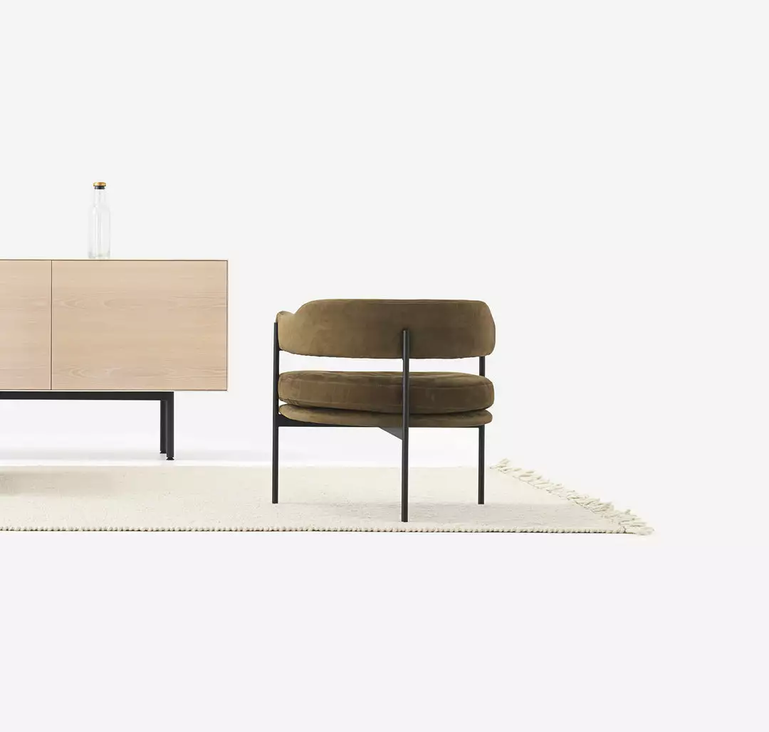 The Isabella lounge chair has a small footprint and generous upholstered seat which makes it ideal for the home or office. Made with a steel base, this chair can be upholstered in fabric or leather.Â