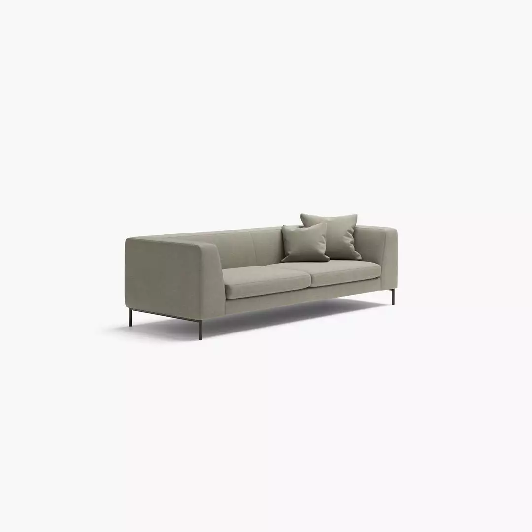 The Knack Sofa by Simon James sits on black powder coated steel legs giving the sofa a lightweight appearance. This Knack comes in a number of seating options, along with chaise and ottoman choices, to give you a multitude of configuration options. The nature of The Knack’s form lends itself to many fabric possibilities. Throw cushions included.