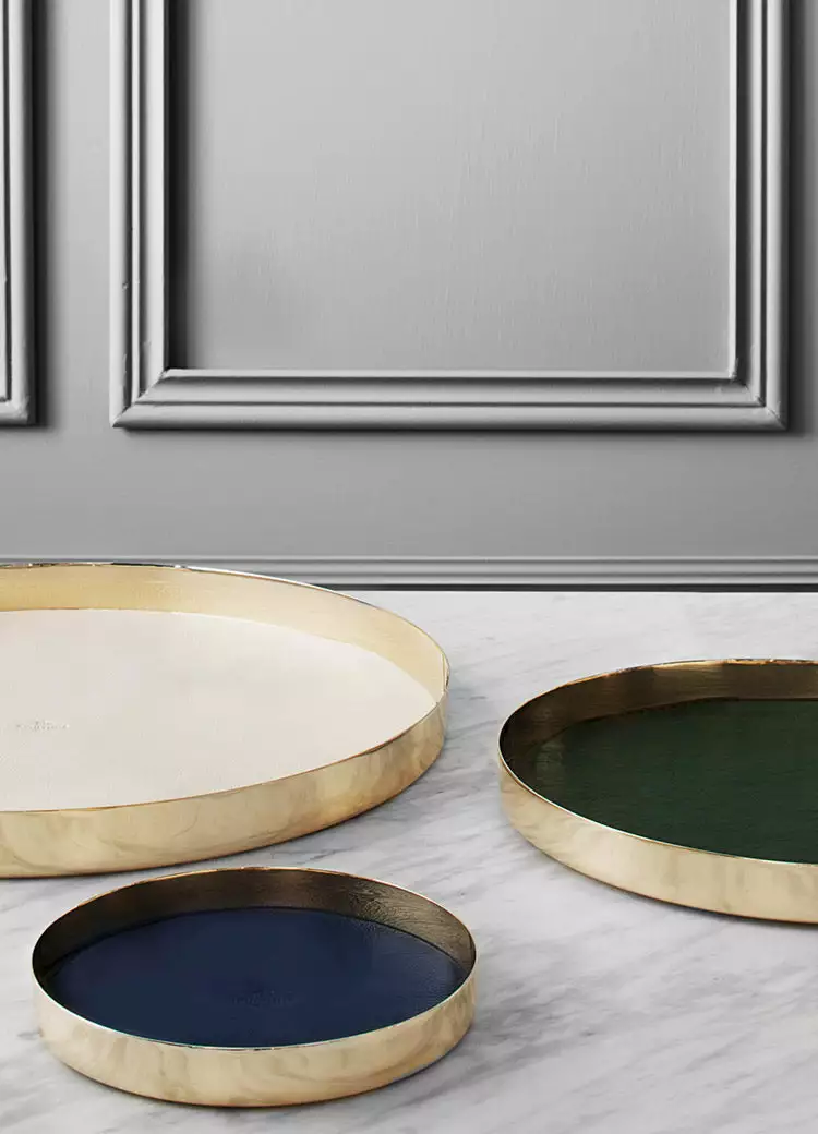 The stunning and timeless Karui trays are leather and brass pieces by GamFratesi for Skultuna. To be used as beautiful, yet functional every day trays to collect and hold things – keys, jewellery, coins, glassware. The trays are made using metal spinning, a classic Skultuna production technique. The leather comes from the leading Swedish tannery Tärnsjö; famous for their high quality leather and located close to Skultuna in Sweden.