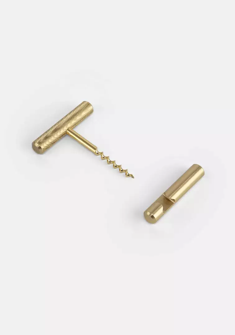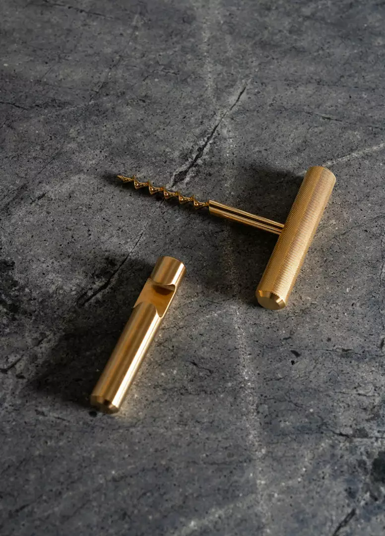 The wine and bottle opener set is made from solid IP-plated steel, it features diamond-cut cross knurl pattern and is refined by hand. A wonderful gift as a practical object or as a desk piece, the shape is elegant and tactile.