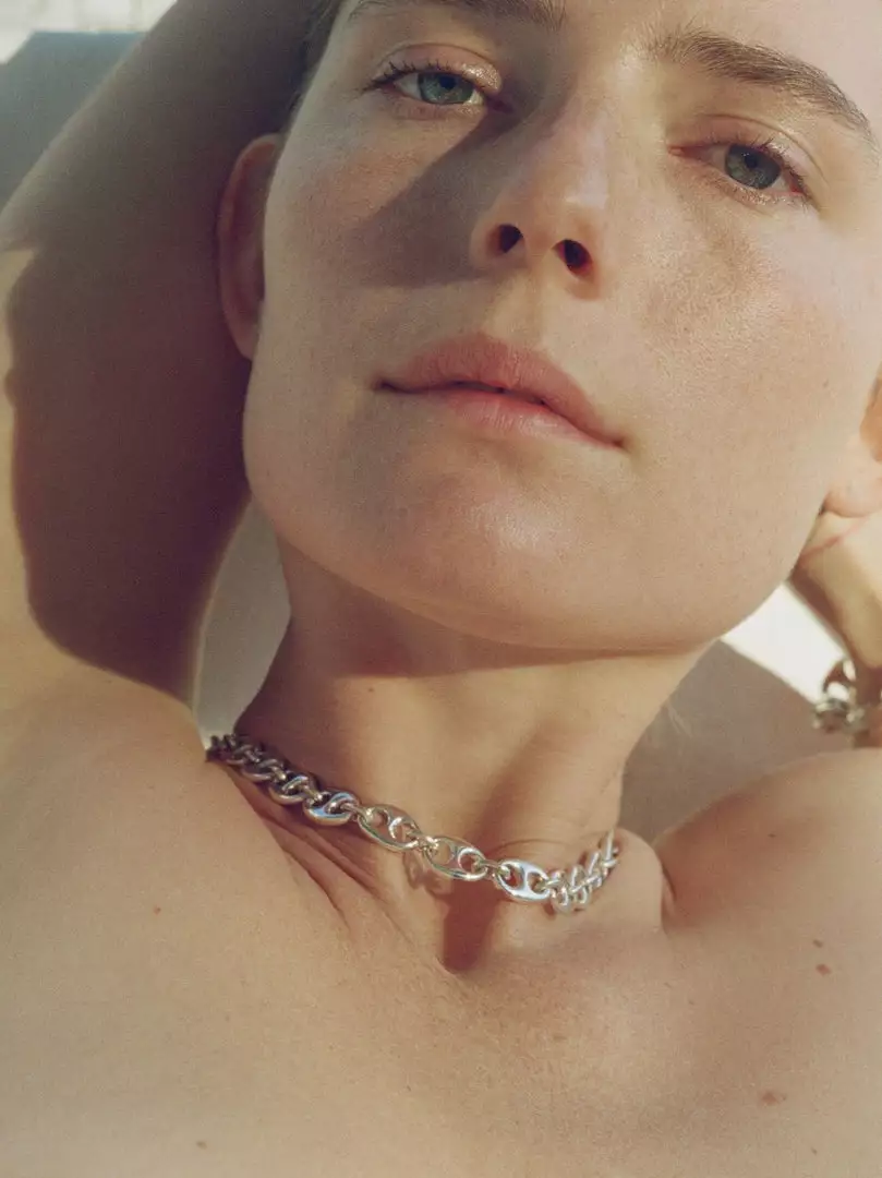 The Small Barbara Chain Necklace is a softer take on the classic Sophie Buhai Barbara style. The flat links sit comfortably along the collarbone and are crafted in sterling silver.