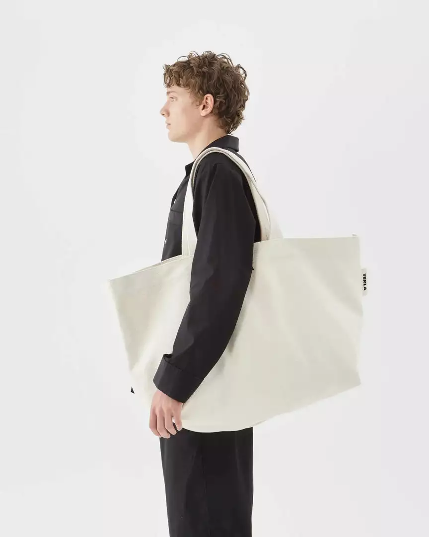 The multifunctional Canvas Bag by Tekla is made from a thick italian canvas weave, making it a durable transporter with a luxurious feel. The oversized bag has handles as well as shoulder straps for ease of use. Inside, you will find a handy slip pocket for your valuables.