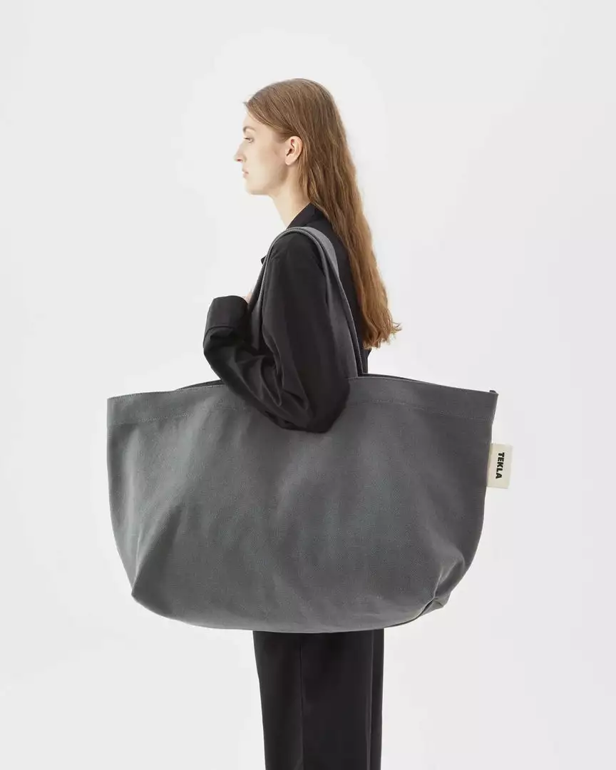 The multifunctional Canvas Bag by Tekla is made from a thick italian canvas weave, making it a durable transporter with a luxurious feel. The oversized bag has handles as well as shoulder straps for ease of use. Inside, you will find a handy slip pocket for your valuables.