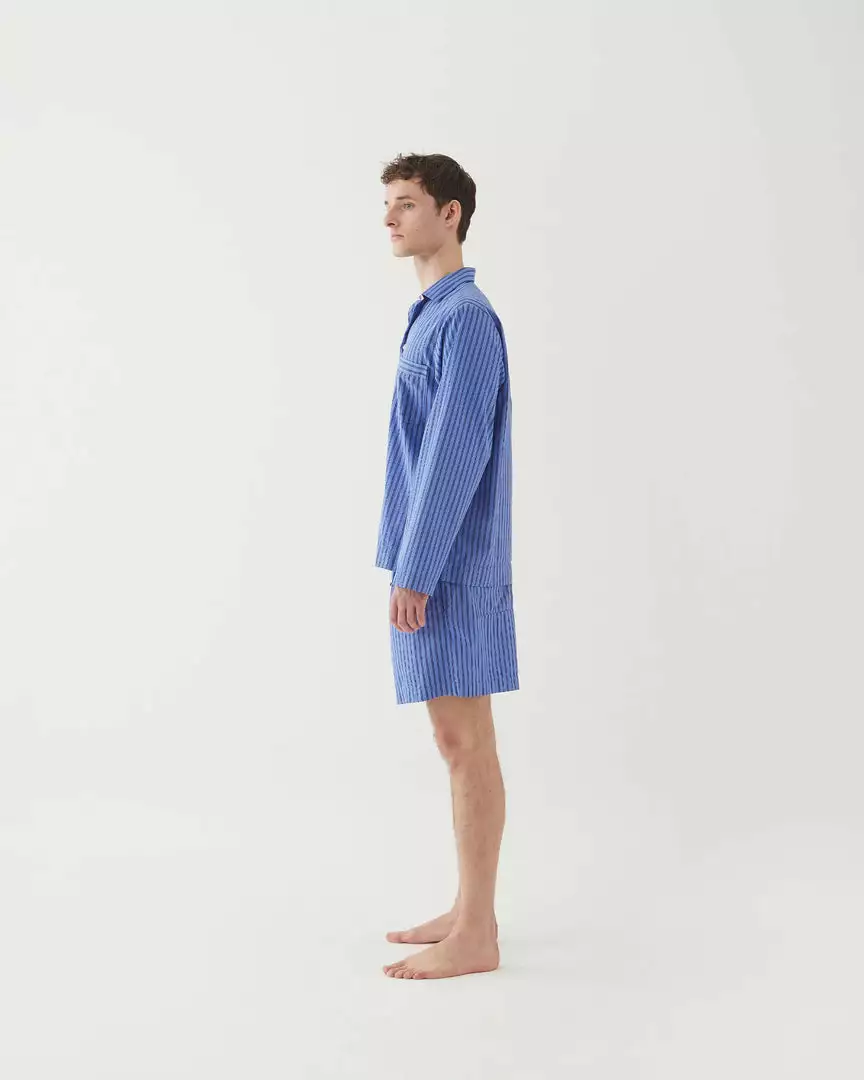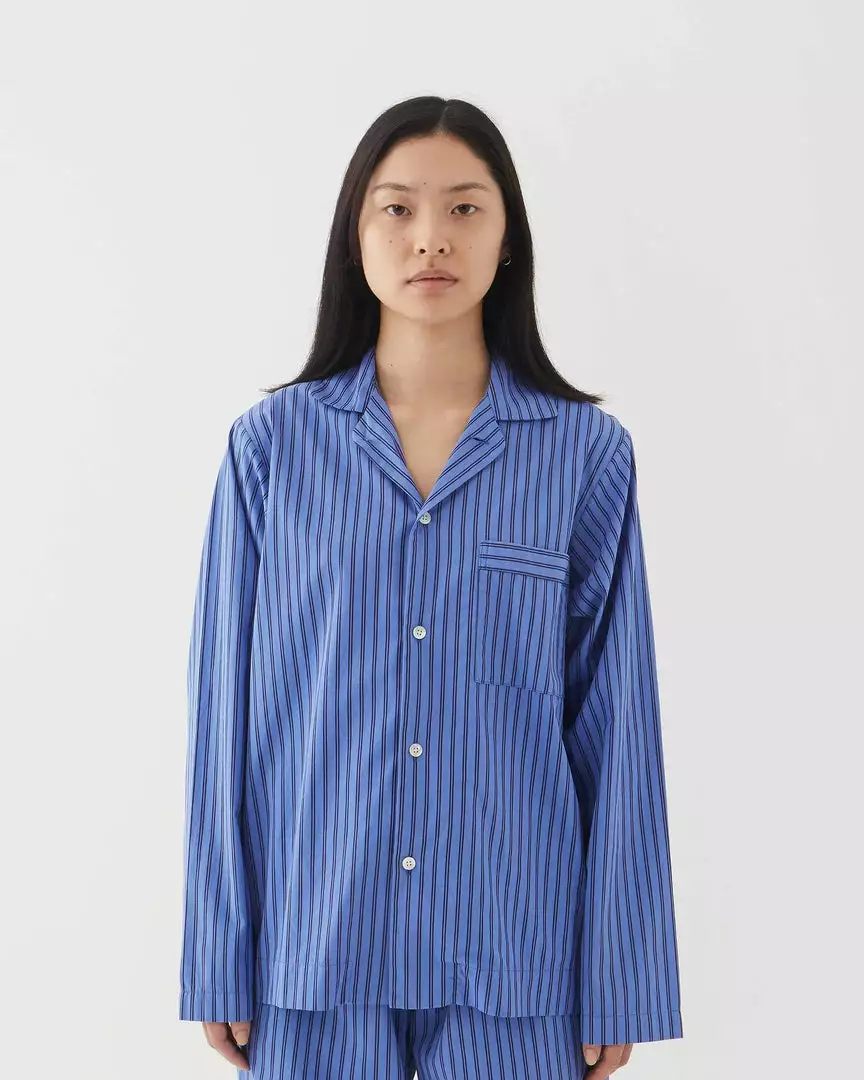 The breathable organic-cotton poplin weave of Tekla’s pyjama shirt creates a smooth surface ideal for lounging at home. It’s shaped to a loose silhouette with a patch pocket and classic collar and fastens with small white buttons.