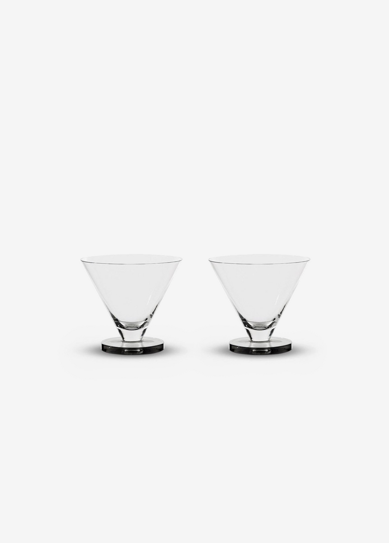This pair of Tom Dixon cocktail glasses are made of mouth-blown glass with a hint of smoke colour. Anchored with a thick base which is reminiscent of game pucks, minimal and heavy-weight, Puck glasses are resilient enough to survive in a professional cocktail environment.