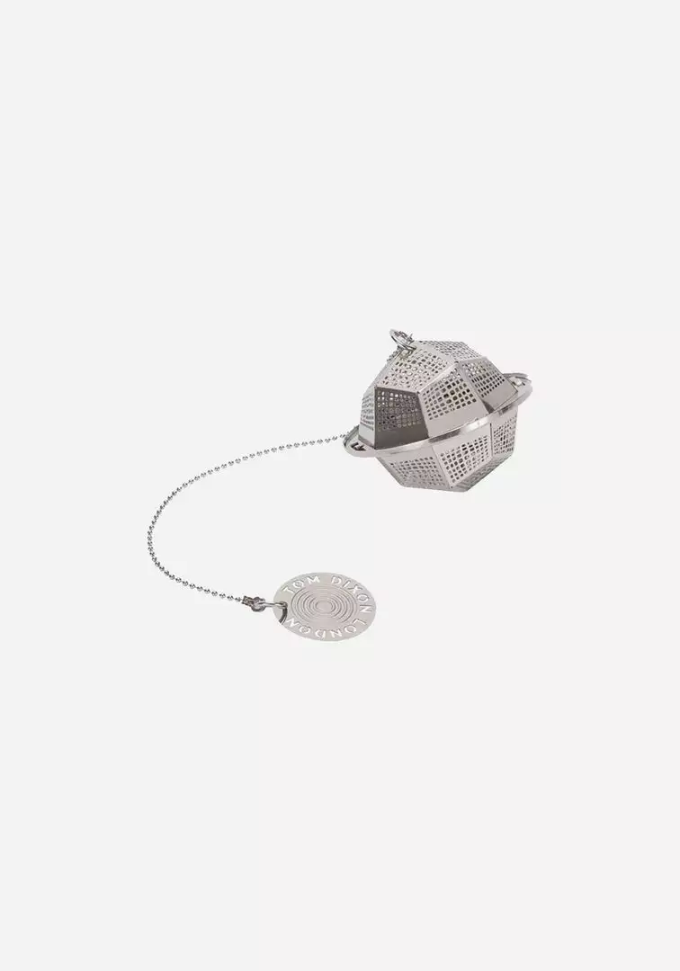 The Etch clipper tea strainer from Tom Dixon is formed from digitally etched stainless steel. Tea leaves are infused within a cone shaped body hung on a delicate metal chain with a neat circular tab. For use in single cups of tea, or in a teapot.