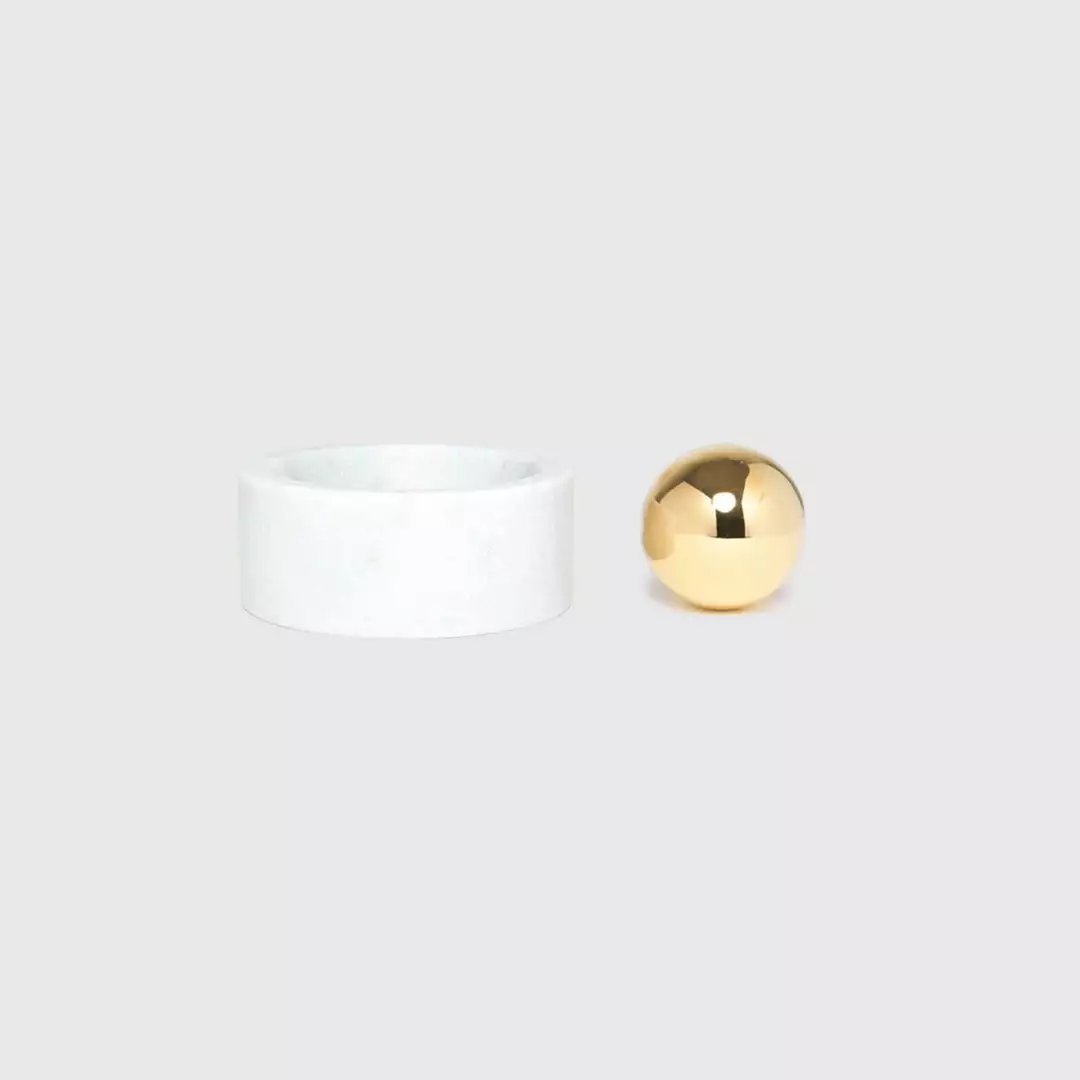 The Stone Spice Grinder designed by Tom Dixon is the simplest of tools, but the most beautiful of forms. Use the pressure of your palm to roll the ball and pulverise your spices. The base is carved from solid blocks of marble with a brass-clad cast iron ball.